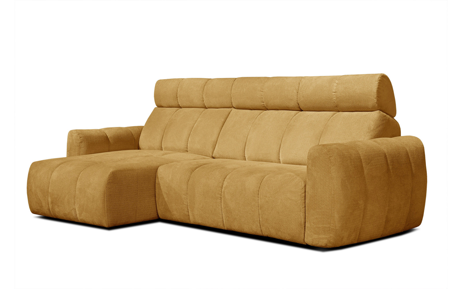 KIMI 3-Sitzer Ecksofa links, ausziehbarer Sitz, verstellbare Kopfstützen, senfgelb