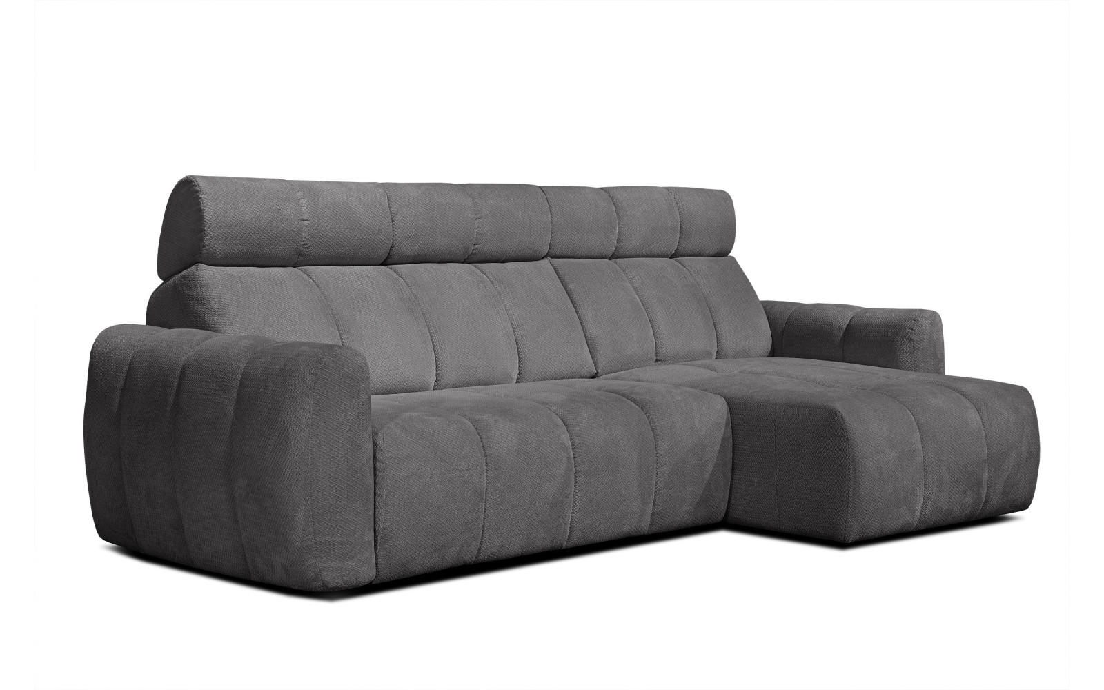 KIMI 3-Sitzer Ecksofa rechts, ausziehbarer Sitz, verstellbare Kopfstützen, dunkelgrau