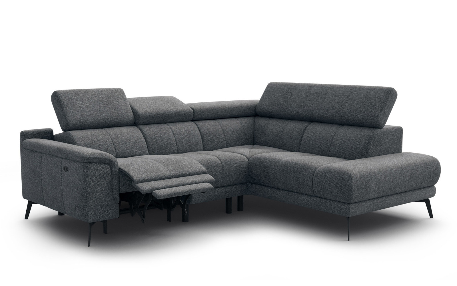 Ecksofa FIERO 4-Sitzer mit 1 Relaxfunktion und verstellbare Kopfstützen, dunkelgrau