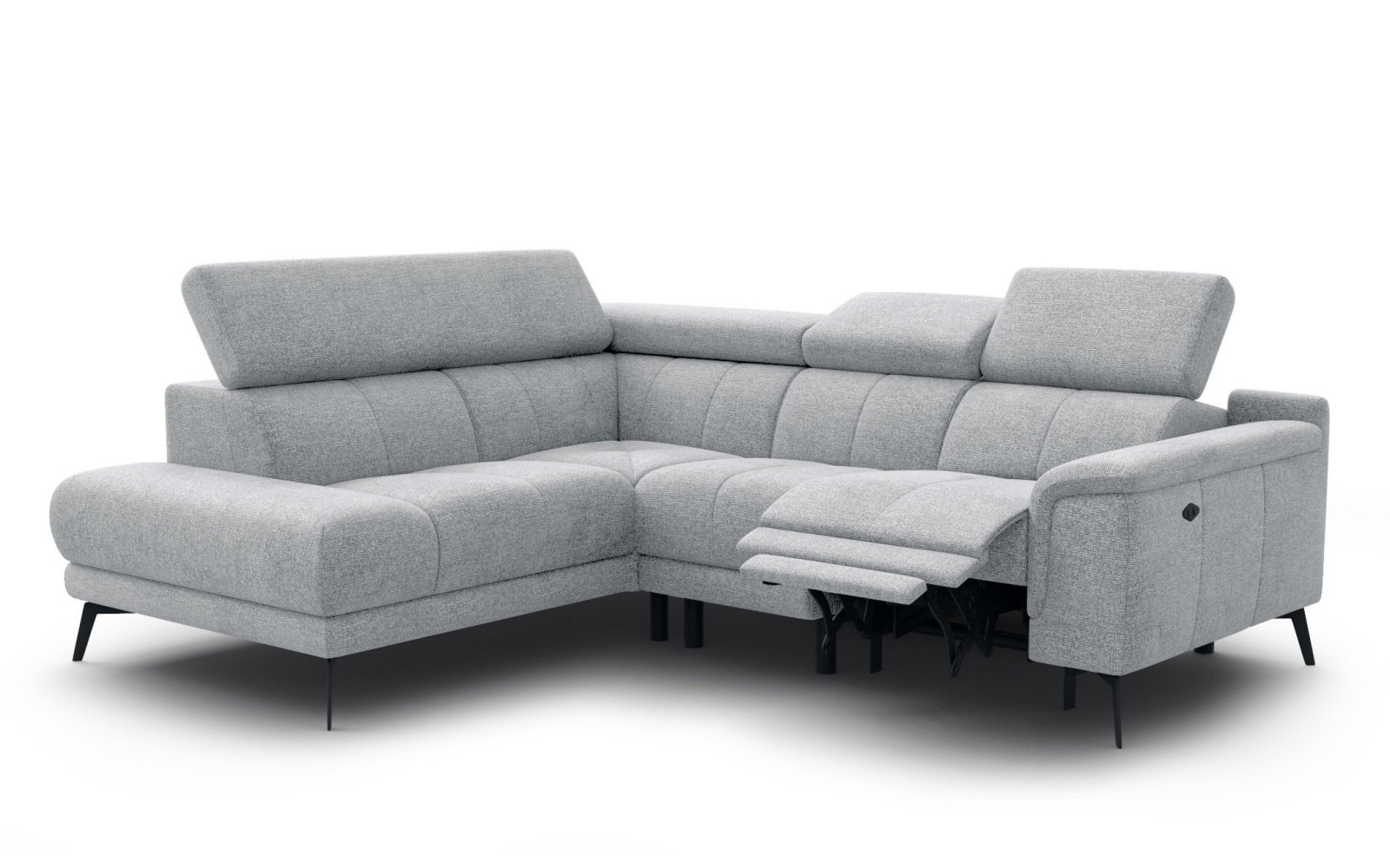Ecksofa FIERO 4-Sitzer mit 1 Relaxfunktion und verstellbare Kopfstützen, silbergrau