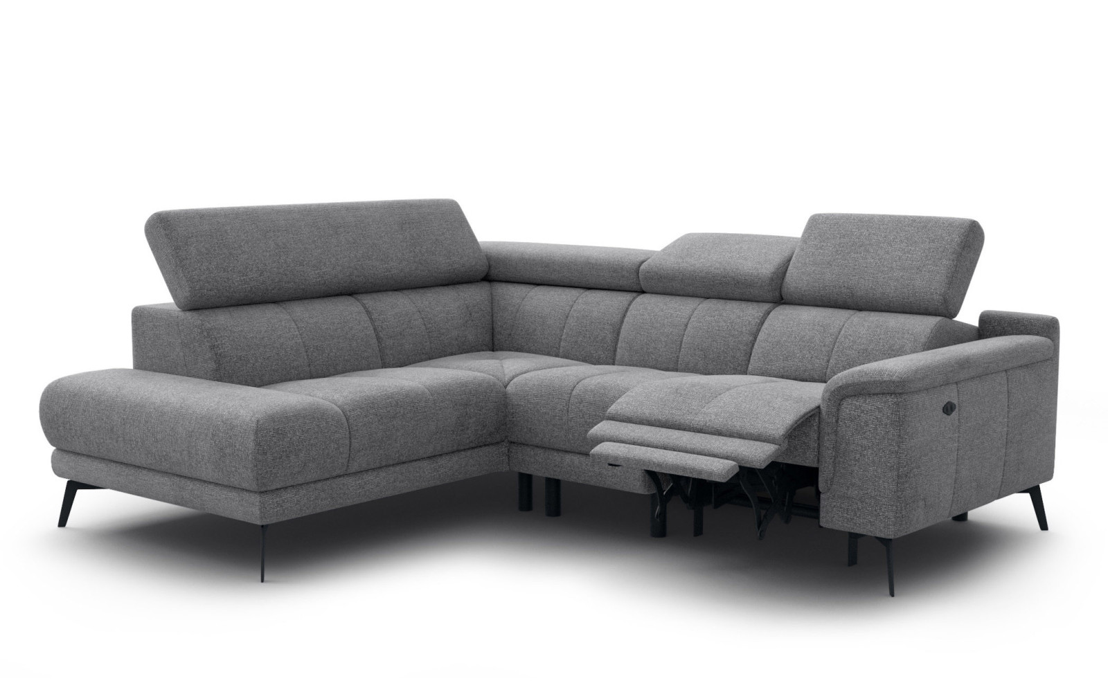 Ecksofa FIERO 4-Sitzer mit 1 Relaxfunktion und verstellbare Kopfstützen, grau