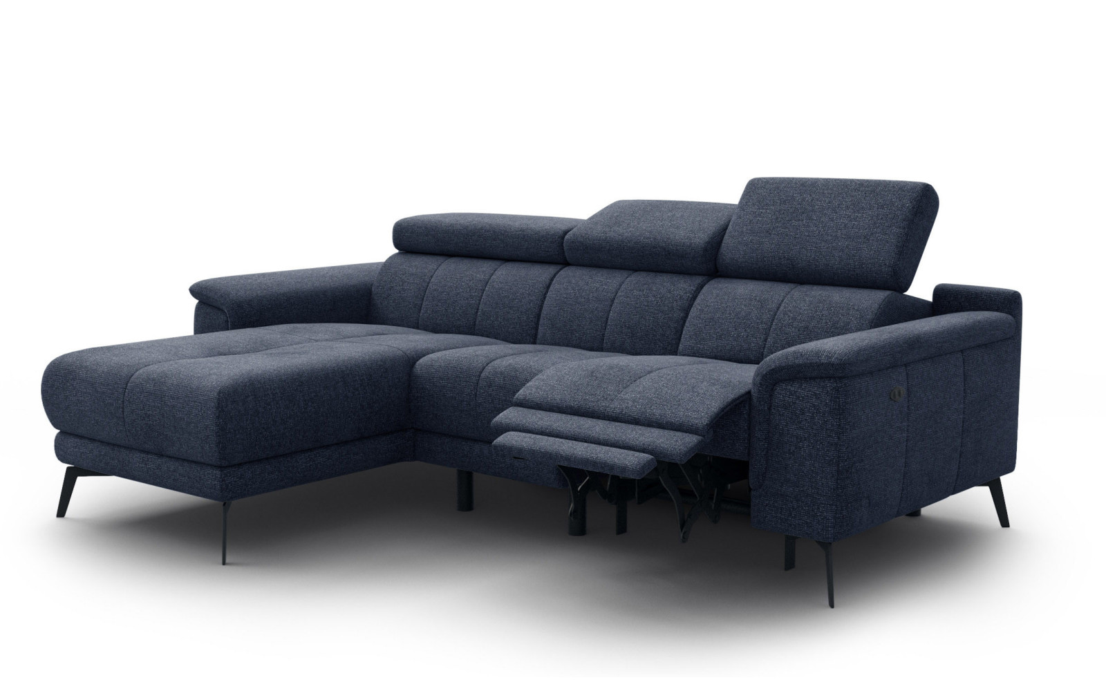 Ecksofa FIERO 3-Sitzer mit 1 Relaxfunktion und verstellbare Kopfstützen, marineblau