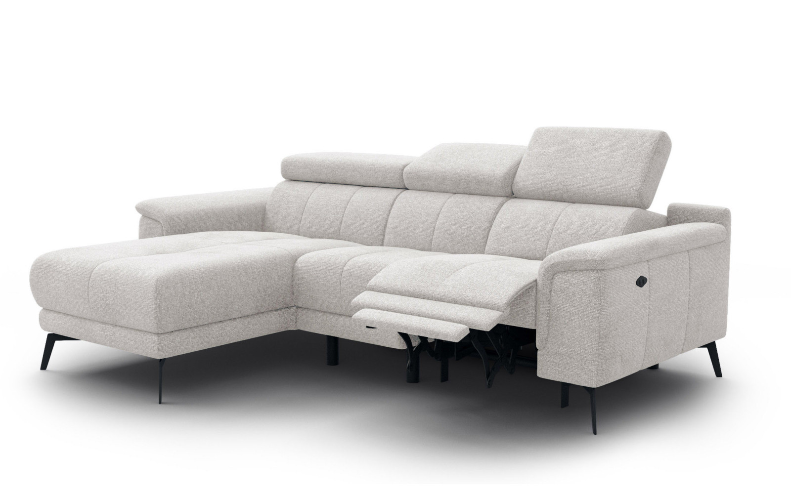 Ecksofa FIERO 3-Sitzer mit 1 Relaxfunktion und verstellbare Kopfstützen, hellbeige