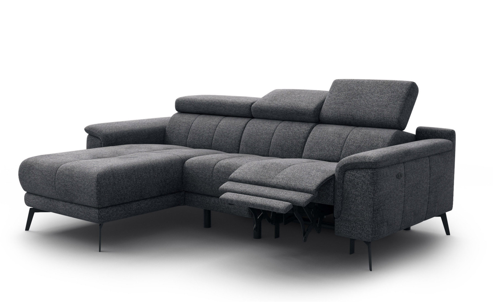 Ecksofa FIERO 3-Sitzer mit 1 Relaxfunktion und verstellbare Kopfstützen, dunkelgrau