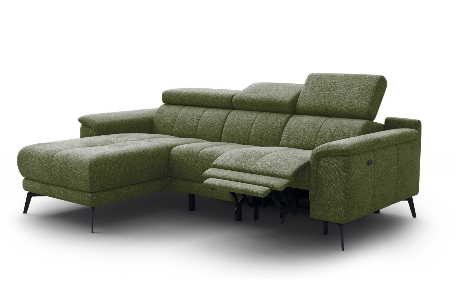 Ecksofa FIERO 3-Sitzer mit 1 Relaxfunktion und verstellbare Kopfstützen, olive