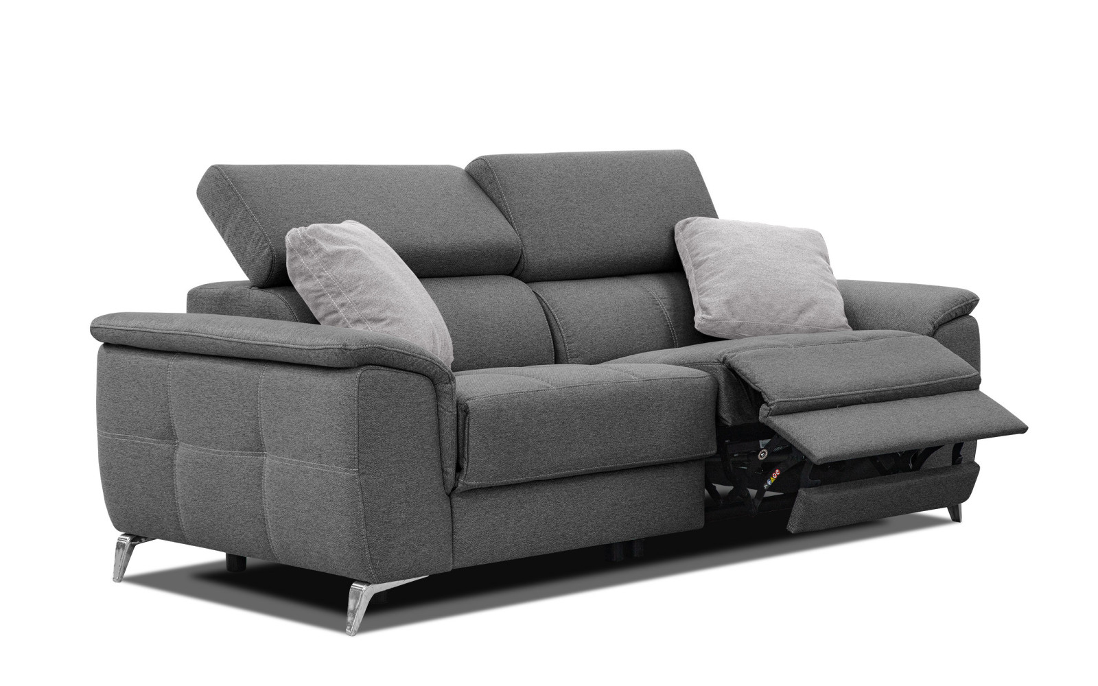PLAUEN Sofa 3-Sitzer mit 2 Relaxfunktionen und verstellbare Kopfstützen, dunkelgrau