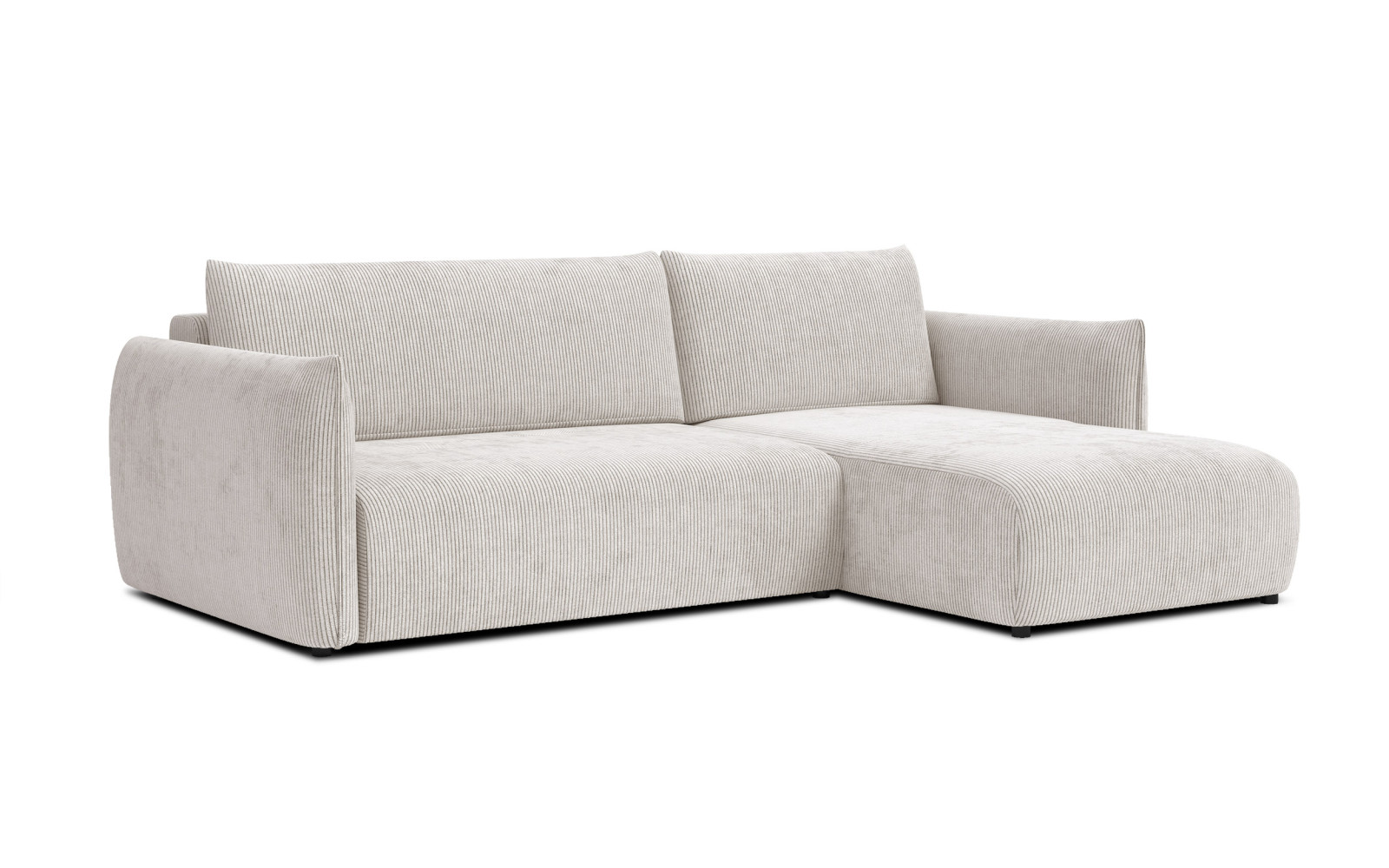Canapé d'angle droit 3 places tissu blanc perle - TAUER