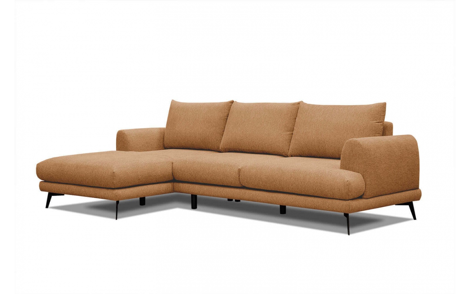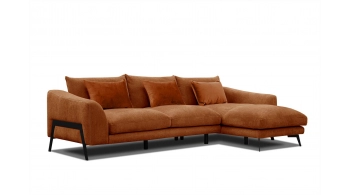 En plus de son style, les pieds noirs métalliques du canapé d'angle donnent l'impression qu'il flotte. Ce divan mise sur le confort et une surface conviviale, avec un rembourrage agréablement moelleux et des accoudoirs confortables. La chaise longue permet en outre de s'asseoir confortablement en position semi-allongée.