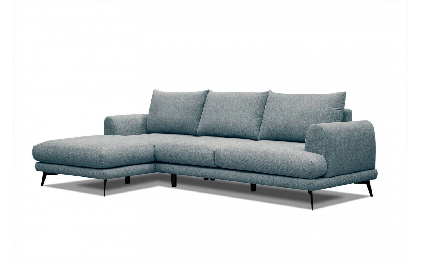 En plus de son style, les pieds noirs métalliques du canapé d'angle donnent l'impression qu'il flotte. Ce divan mise sur le confort et une surface conviviale, avec un rembourrage agréablement moelleux et des accoudoirs confortables. La chaise longue permet en outre de s'asseoir confortablement en position semi-allongée.