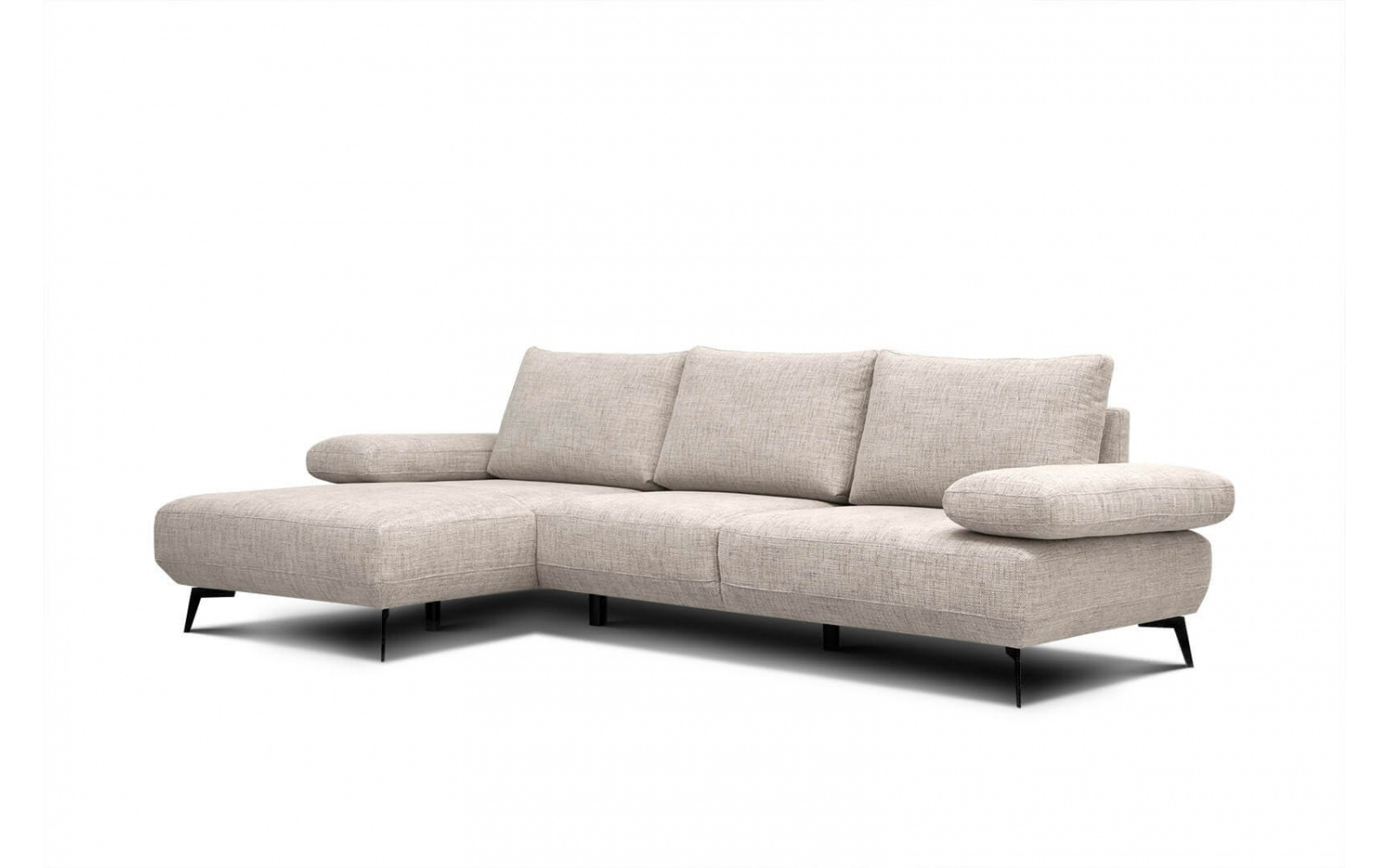 Ce canapé remarquable repose sur d'élégants pieds métalliques noirs qui donnent l'impression qu'il flotte littéralement au-dessus du sol. Avec une largeur imposante de 306 cm, il peut confortablement accueillir jusqu'à quatre personnes, ce qui en fait un choix idéal pour les salons spacieux et les grandes pièces. L'un des points forts du canapé est sa chaise longue confortable de 158 cm de profondeur, qui vous permet non seulement de vous asseoir confortablement, mais aussi de étirer vos jambes et de vous détendre pleinement.