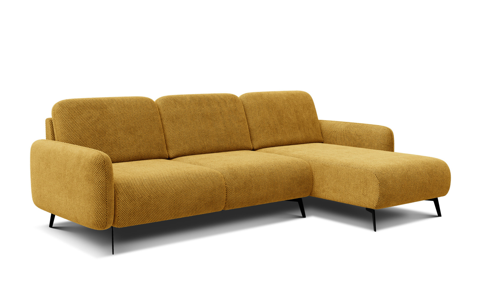 FEBE Canapé d'angle droit 4 places, jaune foncé - Description :Apportez du soleil dans votre intérieur en choisissant le canapé d'angle droit 4 places FEBE, jaune foncé. Ce meuble dynamique est idéal pour égayer votre décoration et lui insuffler une ambiance optimiste et joyeuse. Sa teinte jaune foncé, évoquant le miel, la moutarde ou le safran, est extrêmement élégante et tendance. Elle s'accorde parfaitement avec les styles vintage et rétro, tout en créant un magnifique contraste dans les intérieurs modernes et épurés. L'originalité de ce canapé d'angle est soulignée par son tissu gaufré. Le tissage tridimensionnel, composé de cubes réguliers, donne de la profondeur au revêtement et crée un effet de couleur nuancé et irrégulier. Sur cette texture, le jaune foncé se distingue par son élégance et sa noblesse, sans jamais tomber dans l'excès. Le matériau est épais, doux et velouté au toucher, ce qui rend le canapé d'angle FEBE jaune foncé incroyablement confortable et invite à la détente. Malgré sa couleur expressive, le meuble conserve une forme moderne et minimaliste. Des lignes simples, adoucies par des courbes délicates, et de hauts pieds noirs créent un ensemble gracieux et léger. Le meuble n'est pas imposant par sa taille, tout en offrant un confort optimal pour quatre personnes. C'est la combinaison parfaite entre la fonctionnalité d'un grand canapé d'angle et la légèreté d'un canapé design. Pourquoi le canapé d'angle droit 4 places FEBE, jaune foncé, est une source d'énergie positive ? En choisissant le canapé d'angle droit 4 places FEBE, jaune foncé, vous choisissez un meuble qui influence l'ambiance de votre foyer. Le jaune stimule l'activité, améliore l'humeur et apporte de l'énergie ; ce canapé d'angle est donc idéal pour le salon, véritable cœur de la vie sociale. L'assise confortable en mousse de polyuréthane et le dossier souple en fibre de silicone offrent le confort nécessaire pour de longues conversations et des moments de partage. La configuration à droite du canapé d'angle permet une utilisation optimale de l'espace. Il crée un coin douillet, idéal pour se détendre avec un livre ou regarder sa série préférée. La teinte miel du revêtement s'harmonise parfaitement avec le bleu marine, le vert bouteille, les gris et le bois naturel, offrant ainsi de nombreuses possibilités d'aménagement. Il convient de souligner les qualités pratiques du tissu. Son tissage structuré est non seulement esthétique, mais aussi très résistant à un usage quotidien. Le matériau est résistant au boulochage et conserve sa forme, garantissant ainsi au canapé d'angle un aspect neuf pendant longtemps. Ses pieds hauts facilitent le nettoyage, un atout non négligeable au quotidien. Design et confort dans la version ensoleillée du canapé d'angle FEBELe canapé d'angle FEBE jaune foncé est idéal pour ceux qui n'ont pas peur de la couleur et souhaitent créer une pièce pleine de caractère. Ce meuble attire le regard et marque les esprits, devenant la pièce maîtresse de votre intérieur. Sa teinte chaleureuse crée une ambiance cosy dans le salon, même par temps gris. Une fabrication soignée, une structure stable et une attention particulière aux détails caractérisent la série FEBE. Ses pieds en métal noir lui confèrent du caractère et garantissent sa durabilité. Un investissement design qui ravit les yeux et offre un confort optimal au quotidien. En bref, si vous rêvez d'un intérieur lumineux, chaleureux et original, ce canapé est fait pour vous. Unique en son genre, le canapé d'angle FEBE jaune foncé allie confort et dynamisme pour dynamiser n'importe quelle pièce. Choisissez une couleur et créez une ambiance unique chez vous. |