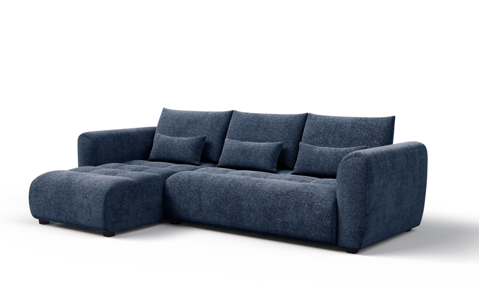 Canapé d'angle 4 places SORENO, gauche, bleu marine - Description :La structure robuste repose sur des pieds bas noirs qui se fondent parfaitement avec le revêtement foncé, créant un ensemble harmonieux. Un capitonnage subtil sur l'assise ajoute une touche d'élégance et souligne la structure du meuble. Chaque détail a été soigneusement pensé pour créer un produit qui non seulement sert de siège, mais décore également l'espace et en rehausse l'esthétique. Pourquoi le canapé d'angle 4 places SORENO, gauche, bleu marine, est-il le choix idéal ?Au-delà de son attrait esthétique, ce canapé d'angle offre un confort inégalé. Le canapé d'angle 4 places SORENO, gauche, bleu marine, est doté d'une assise soutenue par des couches de mousse de densités différentes. Cette solution garantit résilience, confort et résistance à la déformation pour de nombreuses années. La profondeur d'assise de 70 cm vous permet d'adopter une position confortable, idéale pour une sieste l'après-midi ou une soirée de détente avec un livre. L'ergonomie de ce meuble est optimale grâce à son double système de soutien. Les coussins hauts du dossier stabilisent le dos, tandis que les coussins lombaires étroits soutiennent la courbure naturelle de la colonne vertébrale. La relaxation devient ainsi non seulement agréable, mais aussi bénéfique pour la santé. Ce meuble a été conçu pour durer, offrant un soutien optimal au corps et apaisant les sens. Le revêtement foncé présente un aspect pratique remarquable. Sa couleur bleu marine est très facile d'entretien, et le tissu en polyester de haute qualité (résistant à l'abrasion pendant 50 000 cycles Martindale) rend le meuble résistant aux aléas du quotidien. C'est un excellent choix pour les familles avec enfants ou animaux de compagnie, où l'esthétique, la fonctionnalité et la facilité d'entretien sont tout aussi importantes. Canapé d'angle 4 places SORENO, gauche, bleu marine – le luxe à portée de mainLe canapé d'angle SORENO bleu marine s'accorde parfaitement avec les styles glamour et nautique, ainsi qu'avec les lofts industriels bruts. Il contraste élégamment avec les murs clairs, les teintes dorées et cuivrées, et le bois clair. Son agencement à gauche permet de créer un espace de détente intime, propice aux moments de partage et de convivialité. Véritable cœur de la maison, il allie dynamisme et élégance. Le velours chatoyant confère à ce meuble une texture captivante et un charme irrésistible. La douceur de la matière vous enveloppe et vous permet d'oublier le stress du quotidien. C'est votre havre de paix, où le luxe se conjugue à la chaleur du foyer. Sa fabrication robuste et son design intemporel garantissent que ce canapé d'angle ravira vos yeux et votre corps pendant de nombreuses saisons. En résumé, le canapé d'angle 4 places SORENO, à gauche, bleu marine, est un meuble destiné aux connaisseurs de beauté et de confort. Si vous recherchez un mobilier qui apportera du caractère à votre intérieur et vous assurera une détente optimale, ce modèle répondra à vos attentes. Offrez-vous un peu de luxe au quotidien. |