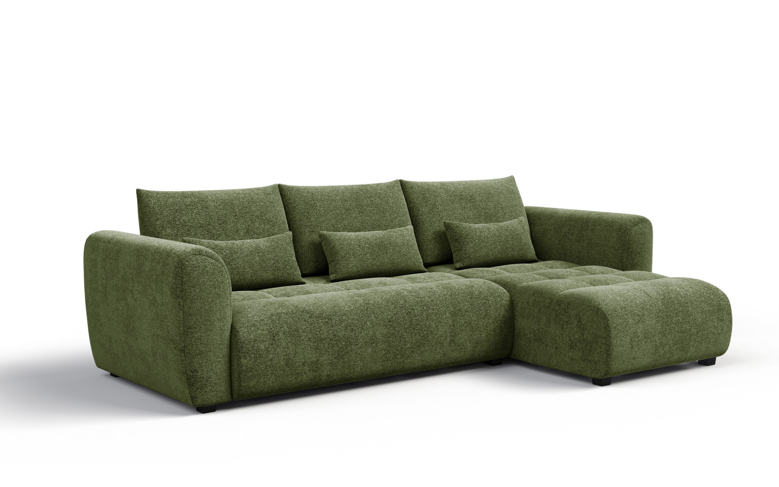 Canapé d'angle 4 places SORENO, côté droit, vert - Description :Le Envie de vous reconnecter à la nature chez vous ? Optez pour un meuble comme le canapé d'angle 4 places SORENO, vert. Ce canapé d'angle unique, d'un vert profond et intense, est synonyme de paix et d'harmonie. Il crée une atmosphère de détente dans le salon, évoquant une escapade en forêt, tout en conservant un style moderne et élégant. C'est le choix idéal pour ceux qui recherchent une pause loin du tumulte de la ville et apprécient un design raffiné. Le canapé est revêtu d'un luxueux velours à poils courts d'une douceur incomparable. Le canapé d'angle vert SORENO offre une sensation incroyablement agréable et chaleureuse au contact de la peau, pour un moment de détente absolu. La texture nuancée du velours lui confère un subtil chatoiement à la lumière, révélant une multitude de nuances de vert. Cet effet d'ombrage confère au meuble une impression de relief et le rend incroyablement impressionnant. Pourquoi le canapé d'angle 4 places SORENO, côté droit, vert, est-il un excellent choix ?En choisissant le canapé d'angle 4 places SORENO, côté droit, vert, vous optez pour un meuble aux lignes douces et élégantes. Ses côtés et son dossier arrondis reflètent les dernières tendances, privilégiant les formes organiques aux angles vifs. Spacieux et confortable, ce canapé accueillera quatre personnes et deviendra le cœur de votre vie familiale. Il repose sur de bas pieds noirs qui lui assurent une grande stabilité et ne nécessitent aucun montage. Le confort est garanti par des couches de mousse de densités différentes qui garnissent l'assise. Grâce à cette conception, ce canapé d'angle SORENO en velours, côté droit, est résistant et indéformable, conservant ainsi sa forme d'origine pendant des années. Le matelassage subtil de l'assise est un détail élégant qui ajoute du cachet à ce meuble et souligne sa grande qualité. Le vert est une couleur qui apaise parfaitement le regard et l'esprit. Il se marie à merveille avec les éléments floraux, le bois et les accessoires dorés. Ce meuble apporte de l'équilibre à l'intérieur et transforme le salon en un véritable havre de paix. Confort et fonctionnalité du canapé d'angle 4 places SORENO, à droite, vert. L'ergonomie est un atout majeur de ce modèle. Le canapé d'angle 4 places SORENO, à droite, vert, est doté de coussins de dossier hauts qui offrent un excellent maintien du dos. Des coussins lombaires étroits sont également inclus, assurant une posture correcte et soulageant la colonne vertébrale. Ceci garantit une détente confortable et saine, même après de longues heures. Les caractéristiques techniques du tissu confirment sa construction robuste. Sa haute résistance à l'abrasion (50 000 cycles Martindale) et au boulochage garantit que le revêtement vert restera esthétique et agréable au toucher pendant longtemps. Sa résistance à la décoloration assure que sa couleur profonde ne s'altère pas au soleil. En bref, ce canapé d'angle vert est un excellent choix pour ceux qui apprécient la proximité avec la nature et un confort luxueux. L'alliance d'une couleur apaisante, d'un velours doux et d'un design bien pensé crée un meuble qui enchante et permet une régénération complète dans le confort de votre foyer. |