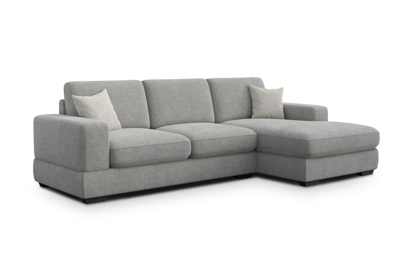 Canapé d'angle droit 4 places OTTO, gris - Description :La forme minimaliste de ce canapé d'angle s'intègre harmonieusement à différents styles de décoration intérieure, du style industriel brut au style scandinave, en passant par les classiques modernes. Le canapé d'angle gris OTTO ne domine pas la pièce, mais la complète avec élégance, créant une atmosphère de calme et d'équilibre. C'est un meuble qui évolue avec les besoins du foyer et s'adapte aux changements de décoration. Pourquoi le canapé d'angle gris OTTO est le choix idéal pour votre intérieur ?La force de ce modèle réside dans son tissu d'ameublement unique. Au lieu d'une couleur plate et uniforme, nous avons un matériau à la structure non uniforme, composé de nombreuses nuances de gris d'intensités variées. Ce traitement confère au tissu profondeur et un aspect très naturel, évoquant la noblesse de la pierre ou la douceur du béton architectural. Le velours court du matériau est très agréable au toucher, rompant avec l'image traditionnelle du gris froid. L'impressionnante largeur du canapé offre un espace de détente confortable pour quatre personnes, en faisant le cœur idéal de la vie familiale. Le canapé OTTO 4 places (côté droit) est un meuble robuste et durable, reposant sur des pieds bas noirs qui lui assurent une parfaite stabilité. Le tissu en polyester haute qualité (plus de 40 000 cycles Martindale) garantit au meuble une apparence neuve pendant de nombreuses années. Cette version de gris est extrêmement facile à nettoyer. Sa texture irrégulière masque les miettes et la poussière, un atout indéniable pour les parents de jeunes enfants. Voici un meuble conçu pour être vécu, pas seulement pour être admiré. Confort et praticité avec le canapé d'angle OTTO – la détente dans une version moderneLe confort est essentiel à tout bon meuble lounge, et le modèle OTTO répond parfaitement à ces exigences. Son assise, composée de plusieurs couches de mousse de densités différentes, offre l'équilibre idéal entre la douceur nécessaire à la relaxation et la fermeté indispensable à une bonne posture. Sa conception a été soigneusement étudiée pour garantir un compromis optimal entre confort et durabilité. Grâce à sa large méridienne, ce canapé d'angle vous permet d'étendre confortablement vos jambes et de vous détendre en position semi-allongée. C'est l'endroit idéal pour une sieste ou un marathon de films. La douceur du tissu rend le contact avec le meuble très agréable, favorisant une relaxation rapide et une réduction du stress. Le canapé d'angle gris OTTO est un véritable havre de paix dans votre intérieur. Sa couleur neutre et sa forme confortable vous permettent de vous détendre et de vous ressourcer loin des stimulations excessives. C'est un meuble qui s'adapte à vous, et non l'inverse. Choisir ce modèle, c'est opter pour une qualité éprouvée et un design intemporel. Le canapé d'angle gris est un classique indémodable et, grâce à la technologie de fabrication moderne de la série OTTO, il devient un meuble qui durera des années. C'est un investissement pour un intérieur à la fois fonctionnel et esthétique. |