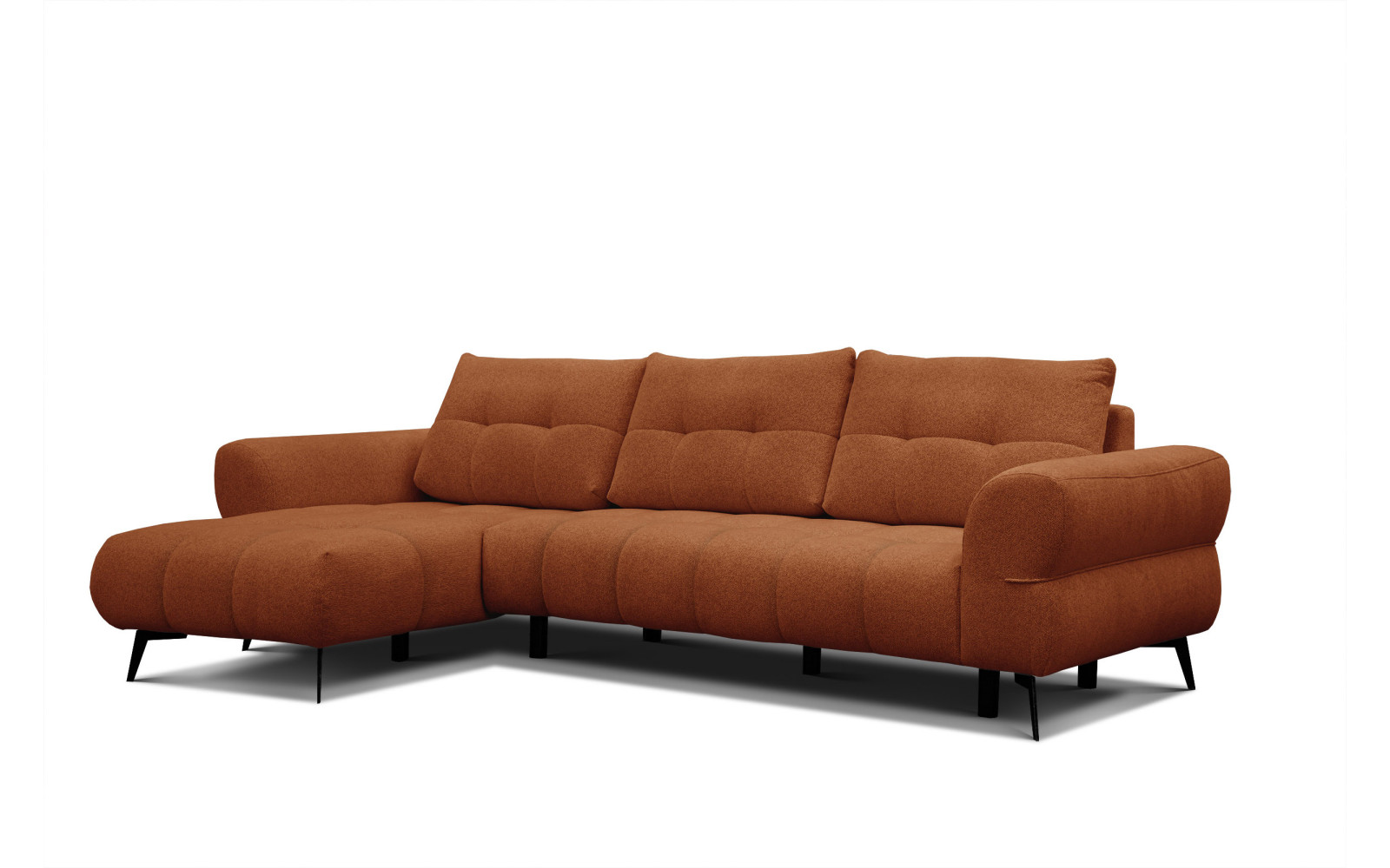 Canapé d'angle gauche 4 places SALVINI, orange - Description : Si vous souhaitez dynamiser votre salon et lui donner un caractère unique, le canapé d'angle gauche 4 places SALVINI orange est un excellent choix. Ce meuble dynamique est idéal pour les personnes audacieuses qui apprécient le design original et souhaitent rompre avec la monotonie en matière de décoration intérieure. La couleur orange intense du revêtement a un effet stimulant, apporte joie et chaleur, et insuffle de la vie à la pièce. Il constitue le point focal parfait d'un agencement moderne, attirant tous les regards. L'originalité de ce modèle est soulignée par l'utilisation d'un velours à poils courts. Ce matériau se caractérise par une douceur extraordinaire et une texture délicate et hétérogène, très agréable au toucher. Le velours a la propriété de jouer avec les nuances, ce qui signifie que le canapé d'angle gauche SALVINI orange change subtilement de teinte selon l'angle de la lumière. Cet effet chatoyant confère une élégance particulière à la pièce et rend la couleur plus profonde et raffinée.L'ensemble de la structure repose sur de fins pieds noirs de seize centimètres de haut. Ils offrent un contraste parfait avec le revêtement lumineux et apportent une touche de légèreté à la silhouette. Ces pieds hauts sont également très pratiques au quotidien : ils permettent un accès facile sous le meuble pour l'aspirateur, y compris les robots aspirateurs. Ainsi, votre salon reste propre et rangé, et la poussière ne s'accumule pas dans les endroits difficiles d'accès. Énergie et confort : Canapé d'angle gauche 4 places SALVINI, orange dans votre intérieurLe confort de vos moments de détente est optimal. Les assises sont garnies de mousses de densités variables, garantissant un soutien optimal et une grande durabilité. Ces mousses sont indéformables, permettant au canapé d'angle gauche orange SALVINI de conserver son élasticité et sa forme pendant de nombreuses années. C'est l'endroit idéal pour se détendre avec un livre, un café ou pour regarder des films en famille. Ce meuble offre de la place pour quatre personnes, garantissant à chacun un confort optimal. La méridienne à gauche permet d'étendre les jambes librement et d'adopter une position allongée confortable. La couleur orange s'harmonise parfaitement avec les nuances de gris, de bleu marine, de vert et de bois, offrant ainsi de nombreuses possibilités en matière de décoration intérieure. Ce meuble est un véritable objet de décoration et n'a pas besoin de beaucoup d'accessoires pour faire son effet. La qualité de fabrication est la norme pour cette collection. Le tissu en polyester épais est résistant à l'abrasion et au boulochage, comme l'ont confirmé d'excellents résultats aux tests Martindale. Ainsi, malgré une couleur intense et une utilisation régulière, le canapé conservera longtemps son aspect attrayant. Sa structure robuste et ses finitions soignées vous garantissent une entière satisfaction. Pourquoi choisir le canapé d'angle gauche 4 places SALVINI, orange ?En choisissant ce canapé, vous insufflez une énergie positive à votre intérieur. L'orange est la couleur de l'optimisme, un véritable remontant, surtout par temps gris. Sa douceur veloutée transforme la détente en un moment de pur luxe. Ce canapé est idéal pour ceux qui souhaitent que leur maison reflète leur personnalité dynamique et leur goût pour les beaux objets. L'ergonomie de ce meuble a été soigneusement étudiée pour un confort optimal. Ses assises profondes et ses dossiers confortables invitent à la relaxation. Son orientation gauche permet une utilisation fonctionnelle de l'espace dans le salon. Ce meuble allie praticité et esthétique raffinée, et deviendra la pièce maîtresse de votre intérieur. En résumé, ce canapé est fait pour ceux qui ont un style original et recherchent qualité et élégance. Une couleur audacieuse, un velours doux et une fabrication robuste sont les caractéristiques qui distinguent ce modèle des autres. Offrez-vous une touche d'originalité avec goût et profitez chaque jour d'un intérieur unique grâce à ce magnifique canapé. |