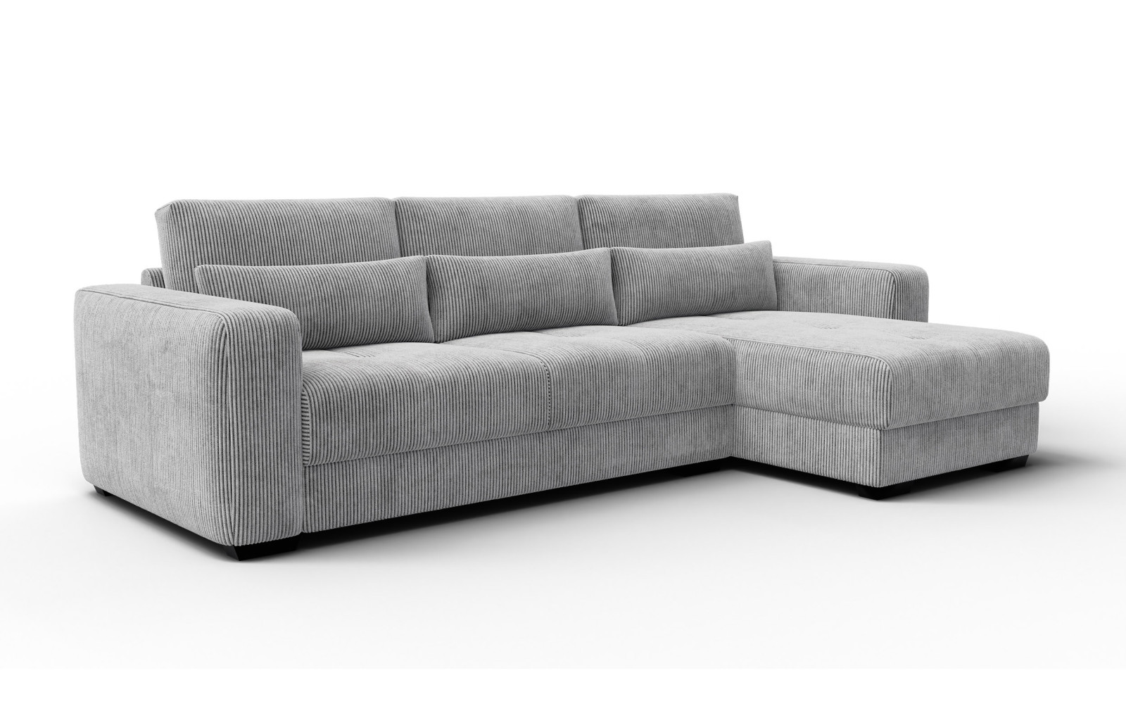 Canapé d'angle droit 4 places OLI, gris clair - Description :L'élégance à l'état pur se cache souvent dans la simplicité et les couleurs universelles. Le canapé d'angle droit OLI 4 places, gris clair, est une proposition idéale pour les amoureux des classiques revisités. La teinte gris clair est extrêmement polyvalente : elle illumine l'intérieur, l'agrandit visuellement et constitue une excellente base pour tous les accessoires de couleur. Que votre salon soit minimaliste, industriel ou scandinave, ce canapé s'y intégrera parfaitement. Le design du modèle OLI repose sur des lignes douces et des formes arrondies qui adoucissent l'austérité des intérieurs modernes. Ses accoudoirs massifs mais proportionnés et sa forme simple confèrent au canapé OLI 4 places gris clair une allure à la fois distinguée et accueillante. C'est un meuble qui ne dicte pas le style, mais y contribue, vous permettant de réaménager librement l'espace autour de lui sans avoir à remplacer l'élément principal d'assise. Le confort et la qualité du canapé OLI gris clairCe qui frappe au premier regard, c'est la texture du tissu. Le canapé est revêtu d'un velours côtelé de haute qualité à larges rayures d'un centimètre. Ce tissu est incroyablement doux et moelleux au toucher, semblable à du velours. De plus, le velours côtelé gris clair joue magnifiquement avec la lumière, changeant subtilement de teinte selon le sens du poil. Cela donne de la profondeur au canapé d'angle droit OLI 4 places gris clair et contraste avec sa forme uniforme et plate. L'apparence unique est complétée par un confort sans compromis. L'assise, garnie d'une mousse durable mi-ferme, offre l'équilibre parfait entre douceur et maintien stable. L'ergonomie de ce modèle permet de longs moments de détente sans fatigue. Une soirée lecture ou une réunion de famille sur ce canapé vous garantit une relaxation optimale. Des coussins décoratifs de couleur contrastante ajoutent du caractère et optimisent le confort du dossier. La solidité de la structure est soulignée par les pieds marron de 4 cm de haut. Ils apportent une touche de couleur plus foncée et délicate qui ancre la silhouette légère du meuble, ajoutant une note d'élégance. Malgré leur petite taille, ils garantissent une stabilité et une durabilité parfaites, essentielles pour un usage quotidien par une famille de quatre personnes. Le canapé d'angle OLI gris clair est un meuble conçu pour durer. Le velours côtelé du modèle OLI allie praticité et confort. L'aspect pratique de ce meuble est tout aussi important que son esthétique. Contrairement aux apparences, le revêtement gris clair est facile d'entretien et sa structure en velours côtelé masque les petites marques d'usure. Le tissu de 350 g/m² et sa haute résistance à l'abrasion garantissent la durabilité de ce meuble. Ses dimensions compactes permettent au canapé d'angle de s'intégrer même dans les petits salons sans sacrifier l'espace d'assise. Son agencement à droite simplifie l'aménagement de l'espace et vous permet de créer un coin salon confortable. Son assise profonde vous invite à la détente dans votre position préférée. C'est un meuble qui s'adapte aux besoins de ses occupants, et non l'inverse. En choisissant ce modèle, vous optez pour une beauté intemporelle et une fonctionnalité optimale. Le canapé d'angle OLI 4 places, à droite, gris clair, est un choix sûr et élégant qui apportera une atmosphère de paix, de luminosité et d'élégance à votre intérieur, devenant ainsi un lieu de rencontre et de détente privilégié. |