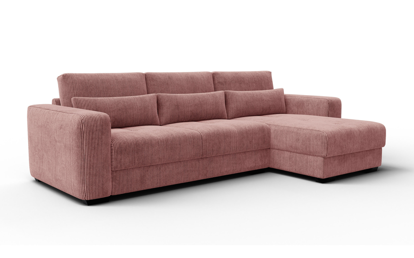 Canapé d'angle 4 places OLI, côté droit, rose - Description :Pour ceux qui souhaitent apporter une touche de romantisme, de délicatesse et d'originalité à leur intérieur, nous avons créé le canapé d'angle 4 places OLI, à droite, rose. Ce charmant canapé d'angle est idéal pour les personnes audacieuses qui n'ont pas peur des couleurs et qui veulent un salon qui se démarque des aménagements classiques. Son revêtement rose, dans une teinte douce et élégante, confère à la pièce une ambiance fraîche et joyeuse. Confectionné en velours côtelé tendance à larges rayures, ce canapé séduit par sa douceur et sa texture veloutée. Le design de la série OLI repose sur des lignes douces et arrondies et une forme à la fois imposante et chaleureuse. Le canapé d'angle 4 places OLI rose, à droite, est un meuble qui bouscule les codes, prouvant que le rose peut être une couleur sophistiquée qui s'intègre parfaitement aux intérieurs modernes. Des pieds bas et bruns forment une base discrète qui ne détourne pas l'attention de l'élément principal : le magnifique revêtement en velours côtelé. De larges bandes de tissu créent un jeu d'ombre et de lumière intéressant sur la surface du meuble, lui conférant un aspect tridimensionnel. Selon le sens du velours, la couleur peut paraître plus claire ou plus foncée. Les coussins décoratifs inclus améliorent le confort et permettent une décoration ludique. C'est le meuble idéal pour les intérieurs féminins, les chambres d'enfants et les salons éclectiques où un style unique est important. Pourquoi le canapé d'angle droit 4 places OLI rose est le choix idéal pour votre maison ? Choisir le canapé d'angle droit 4 places OLI rose, c'est opter pour un intérieur empreint d'énergie positive. La couleur rose a un effet apaisant et améliore l'humeur, transformant le salon en un lieu convivial et accueillant. Malgré son aspect décoratif, ce meuble est extrêmement fonctionnel : il offre quatre places assises confortables, idéales pour recevoir. Le tissu en velours côtelé est non seulement esthétique, mais aussi pratique. Son grammage élevé et sa résistance à l'abrasion garantissent une longue durée de vie au canapé. La texture riche du tissu est agréable au toucher et facile d'entretien. La construction robuste et la mousse durable assurent aux assises une tenue et un confort optimal au quotidien. Le canapé d'angle OLI 4 places rose est une pièce maîtresse : il attire le regard et définit le caractère de toute la pièce. Il s'harmonise parfaitement avec les nuances de gris, d'or, de blanc ou de bleu marine. Ce canapé est idéal pour ceux qui considèrent leur intérieur comme un lieu d'expression personnelle et apprécient les solutions originales. Le confort exceptionnel du velours côtelé du canapé d'angle droit 4 places OLI rose – une détente absolue dans un cocon de douceurLe canapé d'angle droit 4 places OLI rose est non seulement magnifique, mais surtout incroyablement confortable. Ses larges rayures en velours côtelé sont d'une douceur incomparable, invitant à la détente. Le velours du tissu offre un toucher agréable, pour des moments de relaxation encore plus profonds. Ses assises ergonomiques, à la fermeté idéale, assurent un maintien stable, tandis que sa profondeur permet d'étendre les jambes en toute liberté. Ses larges accoudoirs et ses coussins de dossier moelleux créent un espace parfait pour lire, regarder la télévision ou simplement se prélasser. Ce meuble vous enveloppe de douceur, vous procurant un sentiment de sécurité et une paix absolue. Le canapé rose OLI prouve que design et confort peuvent s'allier à merveille. Sa forme accueillante transforme chaque après-midi passé au salon en un moment de pur bonheur. C'est l'endroit idéal pour se ressourcer dans un cadre raffiné qui éveille les sens et vous permet d'échapper à l'agitation du quotidien. Ne frottez pas avec un chiffon humide et ne lavez pas le tissu. Tamponnez délicatement la saleté. Pour un nettoyage en profondeur ou en cas de salissure importante, nous vous recommandons de consulter un spécialiste. Un entretien approprié est une condition essentielle au maintien de la garantie. Le non-respect de ces consignes peut entraîner la perte de votre garantie. Informations importantes : En raison de la fabrication artisanale de nos meubles et de la flexibilité des matériaux utilisés, les dimensions réelles peuvent différer de quelques centimètres des dimensions indiquées. Veuillez vous assurer que le meuble commandé pourra passer par les passages et que la livraison pourra être effectuée correctement. La perception des couleurs est individuelle et dépend de l'éclairage et de l'environnement du meuble. Les photos de meubles affichées sur différents écrans peuvent présenter de légères différences de couleur entre elles et par rapport à l'original. Si vous avez des doutes concernant la couleur ou la texture du tissu, veuillez nous contacter et commander des échantillons. |