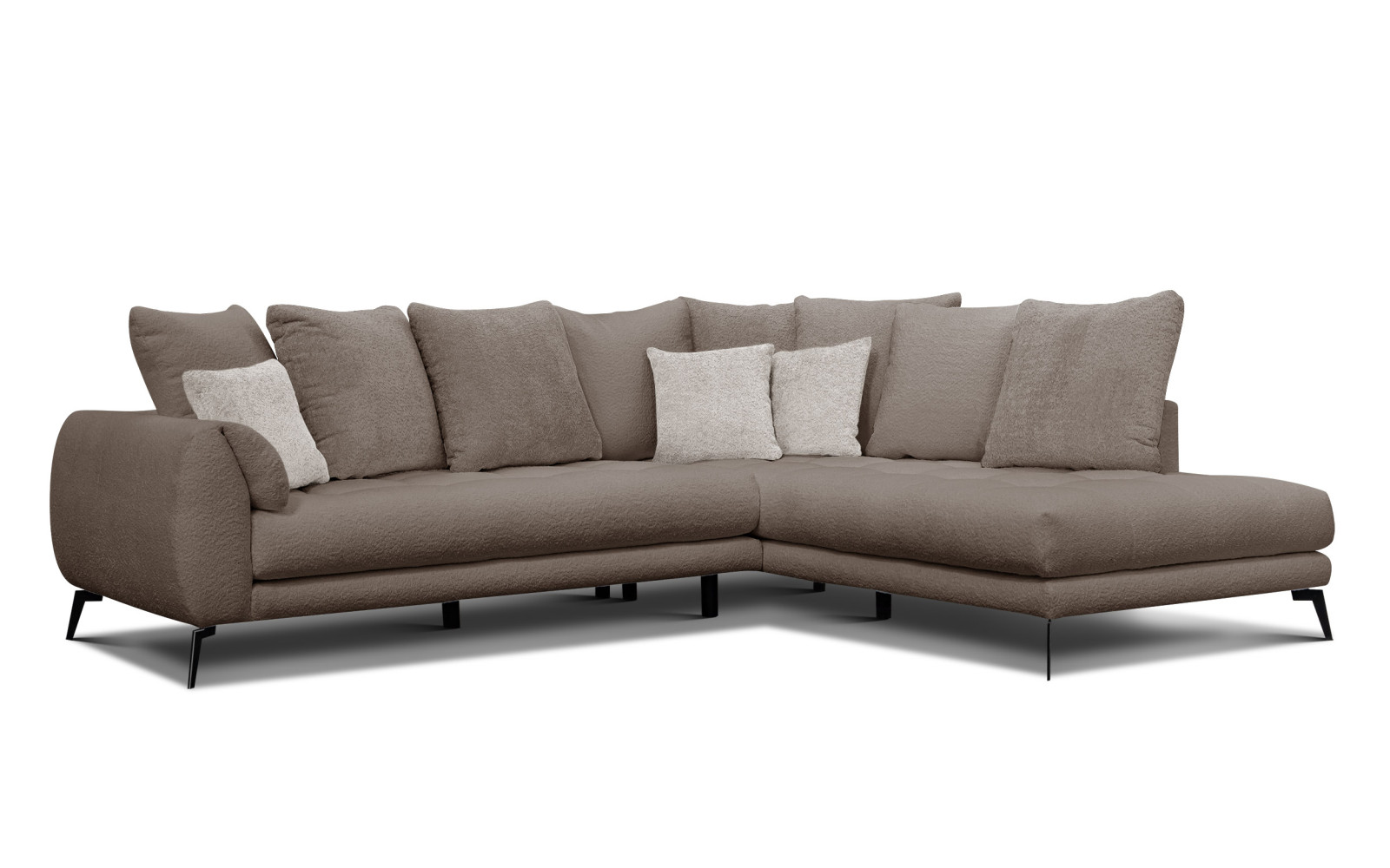 Canapé d'angle 5 places CALME, côté droit, beige - Description :Les intérieurs décorés dans un esprit minimaliste et harmonieux nécessitent un mobilier qui s'accorde à leur caractère sans dominer l'espace. Le canapé d'angle 5 places CALME, côté droit, beige, est la solution idéale pour ceux qui recherchent calme et équilibre chez eux. Ses couleurs uniformes et lumineuses, associées à une forme moderne, créent un meuble qui respire l'élégance et la chaleur. C'est un choix parfait pour un salon, garantissant une détente confortable pour toute la famille. Ce qui distingue ce modèle, c'est son revêtement unique. Le tissu bouclé, avec sa structure en boucles caractéristique, est non seulement une tendance déco du moment, mais surtout une matière incroyablement agréable au toucher. Sa douceur et son moelleux font de chaque contact avec le canapé un pur plaisir. Le canapé d'angle CALME beige en tissu bouclé apporte de la texture à l'intérieur, dynamisant l'espace tout en restant dans une palette de couleurs naturelles et sobres. Son design s'inspire du concept de « mur souple ». De nombreux coussins de dossier amovibles permettent de créer un cocon douillet où se détendre après une longue journée. L'utilisateur est libre de les agencer et d'ajuster le soutien du dos à sa convenance. Le canapé d'angle CALME 5 places est un meuble qui s'adapte à vous, offrant liberté et sans les structures rigides typiques des canapés d'angle traditionnels. Ses hauts pieds de 16 centimètres en métal noir apportent une touche de légèreté à cette silhouette imposante. Surélevée, la structure paraît plus fine et plus raffinée. De plus, cette solution est extrêmement pratique : elle facilite le nettoyage sous le canapé et permet aux robots nettoyeurs d'y accéder aisément. L'élégant canapé d'angle CALME allie esthétique et fonctionnalité, deux éléments essentiels pour un intérieur moderne. Fonctionnalité et détente avec le canapé d'angle beige CALME. La spacieuse méridienne, bien positionnée, est idéale pour une sieste l'après-midi ou une soirée de détente avec un livre. Sa conception modulable offre suffisamment d'espace pour cinq personnes, faisant de ce meuble un lieu de convivialité par excellence. Grâce à l'utilisation de plusieurs couches de mousse de densités différentes, l'assise est durable et résistante. Le canapé relaxant beige CALME garantit une relaxation optimale et un bon maintien du corps. Le rembourrage en fibres de silicone des coussins de dossier assure douceur et résilience. Les coussins ne se déforment pas et reprennent leur forme initiale, préservant ainsi l'esthétique du meuble. Les lignes épurées des accoudoirs apportent douceur et naturel à la pièce, favorisant la sérénité. Le canapé d'angle CALME avec méridienne est un meuble conçu pour apaiser les sens. Son revêtement beige constitue une base universelle qui s'accorde avec presque tous les styles d'intérieur, du scandinave au bohème en passant par le classicisme moderne. Cette couleur illumine la pièce et l'agrandit visuellement. L'élégant canapé d'angle CALME beige vous permet de modifier facilement l'ambiance de votre intérieur grâce à des accessoires colorés, des plaids ou des coussins décoratifs, créant ainsi toujours une toile de fond parfaite. Pourquoi le canapé d'angle CALME beige est un excellent choix ? En choisissant ce modèle, vous investissez dans la qualité et la durabilité. Son tissu en polyester épais est résistant au boulochage et léger, garantissant ainsi à ce meuble une apparence impeccable pour de nombreuses années. Le canapé d'angle CALME beige est un meuble qui non seulement embellit le jour de son achat, mais résiste aussi aux aléas du quotidien grâce à sa facilité d'entretien. Son élégance décontractée transforme le salon en un espace plus convivial, propice aux moments de partage. L'absence de séparations rigides dans l'assise et la possibilité de disposer les coussins à sa guise sont des atouts que toute la famille appréciera. Le grand canapé CALME est le cœur de la maison, vibrant au rythme d'une vie paisible, vous invitant à ralentir et à savourer l'instant présent. En bref, c'est la solution idéale pour ceux qui ne veulent pas choisir entre style et confort. Ce canapé d'angle en bouclé beige est synonyme de confort luxueux, accessible au quotidien. Son esthétique intemporelle et sa conception soignée en feront un meuble incontournable de votre intérieur, offrant un cadre idéal pour se ressourcer. |