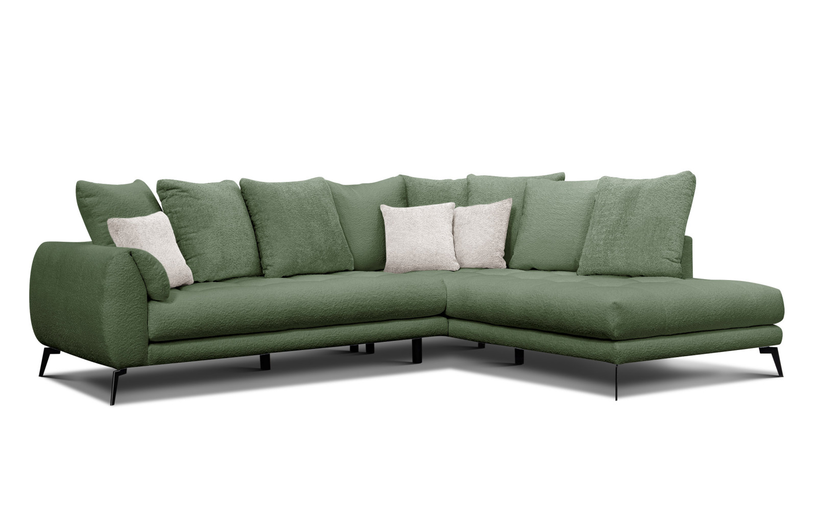Canapé d'angle 5 places CALME, côté droit, olive - Description :Lorsque vous recherchez un meuble qui deviendra la pièce maîtresse d'un salon spacieux, il est judicieux de privilégier un modèle alliant esthétique raffinée et confort absolu. Le canapé d'angle 5 places CALME, côté droit, olive présenté ici est une proposition idéale pour ceux qui apprécient un design moderne sans compromis sur le confort. Sa forme unique, basée sur des lignes arrondies et des contours doux, apporte harmonie et sérénité à l'intérieur, tandis que sa teinte verte profonde évoque les couleurs naturelles de la terre, favorisant la détente après une longue journée. Ce modèle se distingue par son revêtement incroyablement doux au toucher. Le tissu bouclé utilisé, avec sa texture gaufrée caractéristique, rend le meuble moelleux et confortable, invitant à s'y lover. Ce matériau est non seulement magnifique à la lumière du jour comme à la lumière artificielle, conférant à la forme un aspect tridimensionnel, mais il est également très résistant, comme l'ont confirmé les tests d'abrasion. Le revêtement vert olive s'harmonise parfaitement avec une variété de styles d'intérieur, du style botanique au loft, en passant par les intérieurs éclectiques et dynamiques. Pourquoi le canapé d'angle 5 places CALME, coloris Olive, est-il le choix idéal pour votre maison ?En choisissant ce canapé, vous avez la garantie d'un confort optimal. La structure de l'assise est composée de couches de mousse de densités différentes soigneusement sélectionnées, offrant un soutien optimal du corps sans affaissement, tout en garantissant une durabilité à toute épreuve. Cette solution transforme chaque instant passé sur le canapé en un pur plaisir des sens, qu'il s'agisse d'une sieste l'après-midi ou d'une soirée cinéma entre amis. Un élément clé du confort réside dans les coussins de dossier disposés de manière souple. Garnis de fibres de silicone, ils forment une paroi moelleuse qui épouse parfaitement les contours de votre dos, soulageant ainsi les muscles fatigués. Les coussins n'étant pas fixés de façon permanente, leur disposition est modulable, permettant d'ajuster la profondeur d'assise selon les préférences de chacun. Cette flexibilité dans l'aménagement de votre espace détente est l'un des principaux atouts de la collection Calme. Malgré ses dimensions imposantes, offrant cinq places, ce canapé paraît incroyablement léger et élégant. Ceci grâce à ses fins pieds en métal noir qui le surélèvent à 16 centimètres. Cette solution apporte non seulement une touche d'élégance et de modernité au canapé, mais se révèle également très pratique pour le nettoyage quotidien, permettant aux robots aspirateurs d'accéder facilement à sa surface. Fonctionnalité et design du canapé d'angle CALME 5 places, à droite, oliveIl convient de souligner les détails soignés qui confèrent à ce canapé d'angle son caractère unique. Les lignes courbes des accoudoirs apportent une fluidité de forme à l'intérieur, adoucissant l'austérité des agencements minimalistes. Ce meuble ne domine pas par sa masse imposante, mais invite à la détente grâce à sa forme ouverte et modulable. L'orientation à droite de la méridienne permet une utilisation optimale de l'espace dans le salon, créant une zone de séparation naturelle entre le coin salon et l'espace repas ou cuisine. Une fabrication robuste s'allie à l'esthétique. La structure a été conçue pour résister aux contraintes d'une utilisation quotidienne par une famille nombreuse. La haute résistance au boulochage et à la lumière du tissu garantit que la couleur olive reste éclatante et fraîche longtemps, tandis que la texture bouclée conserve sa douceur caractéristique. C'est un investissement dans la qualité qui ravit le regard et le corps jour après jour. Le canapé 5 places CALME vert olive présenté, version droite, incarne le luxe contemporain, conçu comme un espace où l'on peut être soi-même en toute liberté. C'est un lieu où le design est au service des personnes, et non l'inverse. Nous vous invitons à intégrer à votre salon un élément qui allie les atouts d'un design fonctionnel : beauté, durabilité et confort inégalé. |
