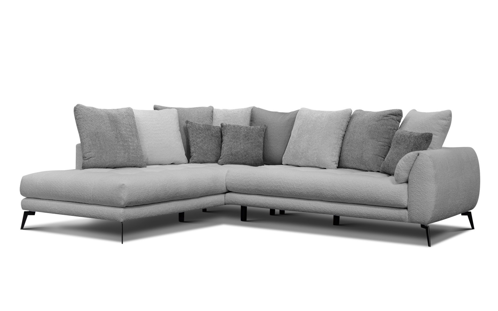 Canapé d'angle 5 places CALME, gauche, gris clair et gris foncé - Description :L'élégance réside dans les détails et les subtiles associations. Le sophistiqué canapé d'angle 5 places CALME, gauche, gris clair et gris foncé est un meuble conçu pour les amateurs de design moderne et multidimensionnel. L'association de deux nuances de gris – un gris clair lumineux et un gris foncé profond – crée une composition monochrome harmonieuse qui apporte classe et élégance à l'intérieur, sans jamais tomber dans la monotonie. C'est le choix idéal pour les salons de style classique moderne, industriel ou minimaliste. Ce modèle se distingue par son revêtement en bouclé. Sa texture bouclée unique donne vie aux nuances de gris et leur confère un aspect tridimensionnel. Doux, épais et très agréable au toucher, ce matériau adoucit la froideur des couleurs et apporte une touche de confort à la pièce. Le jeu d'ombre et de lumière sur la structure du tissu, associé à deux nuances de gris, confère au canapé une allure exceptionnellement exclusive. Pourquoi le canapé d'angle 5 places CALME, à gauche, gris clair et gris foncé, est-il un choix judicieux ?Le confort offert par ce meuble est le fruit de solutions technologiques ingénieuses. L'assise est composée de plusieurs couches de mousse de densités différentes, garantissant une fermeté et un soutien optimaux. Le canapé CALME bicolore gris (version gauche) est ainsi l'endroit idéal pour se détendre, sans aucune gêne, même après plusieurs heures d'utilisation. C'est la base parfaite pour se relaxer chez soi. Un confort exceptionnel est garanti par des coussins de dossier amovibles, garnis de fibres de silicone moelleuses. Ils offrent un soutien doux qui s'adapte parfaitement à votre dos. La variété des couleurs de coussins – certains gris clair, d'autres gris foncé – vous permet de créer des compositions graphiques intéressantes sur le canapé, diversifiant ainsi son style. Vous pouvez les mélanger librement, en modifiant les proportions d'accents clairs et foncés selon vos préférences. L'ensemble de la structure repose sur de fins pieds noirs de 16 cm de haut. Le piètement en métal confère au meuble un caractère léger et moderne, et s'harmonise parfaitement avec les éléments plus foncés du revêtement. Les pieds hauts sont non seulement esthétiques, mais aussi pratiques : ils facilitent le nettoyage sous le canapé, un point essentiel pour une bonne hygiène à la maison. Fonctionnalité et design du canapé d'angle 5 places CALME, à gauche, gris clair et gris foncéLa configuration à gauche avec méridienne offre un espace généreux pour 5 personnes. Les lignes épurées, les contours doux et l'absence d'arêtes vives du meuble rendent le canapé accueillant et rassurant. Le gris bicolore est extrêmement pratique au quotidien, dissimulant les saletés tout en offrant une excellente base pour d'autres couleurs dans votre intérieur. La qualité de fabrication est irréprochable. Le tissu, très résistant à l'abrasion (test Martindale) et au boulochage, garantit au meuble une apparence impeccable pendant longtemps. C'est un investissement durable et esthétique qui résiste aux modes passagères et crée un point focal élégant et permanent dans votre maison. En choisissant le canapé CALME gris bicolore, vous optez pour un meuble à la fois esthétique, fonctionnel et extrêmement confortable. Voici une proposition pour ceux qui recherchent la paix et l'harmonie dans leur environnement sans sacrifier le design moderne. |