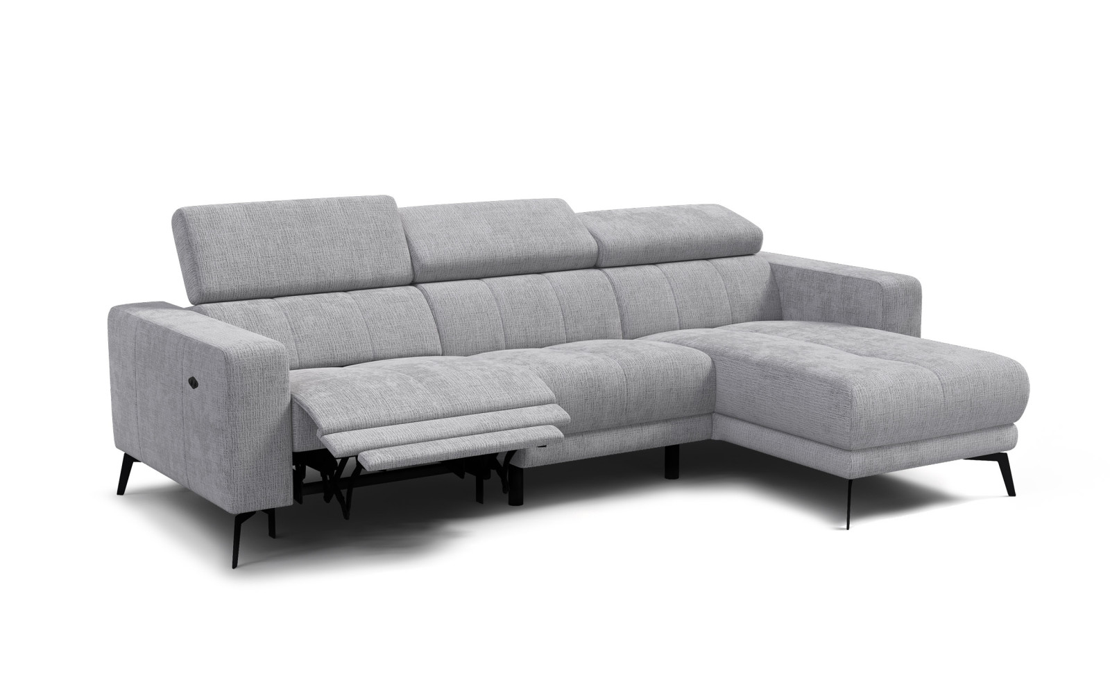 Canapé d'angle 4 places MORELLO avec 1 x Relax Zero Gravity, tissu gris clair