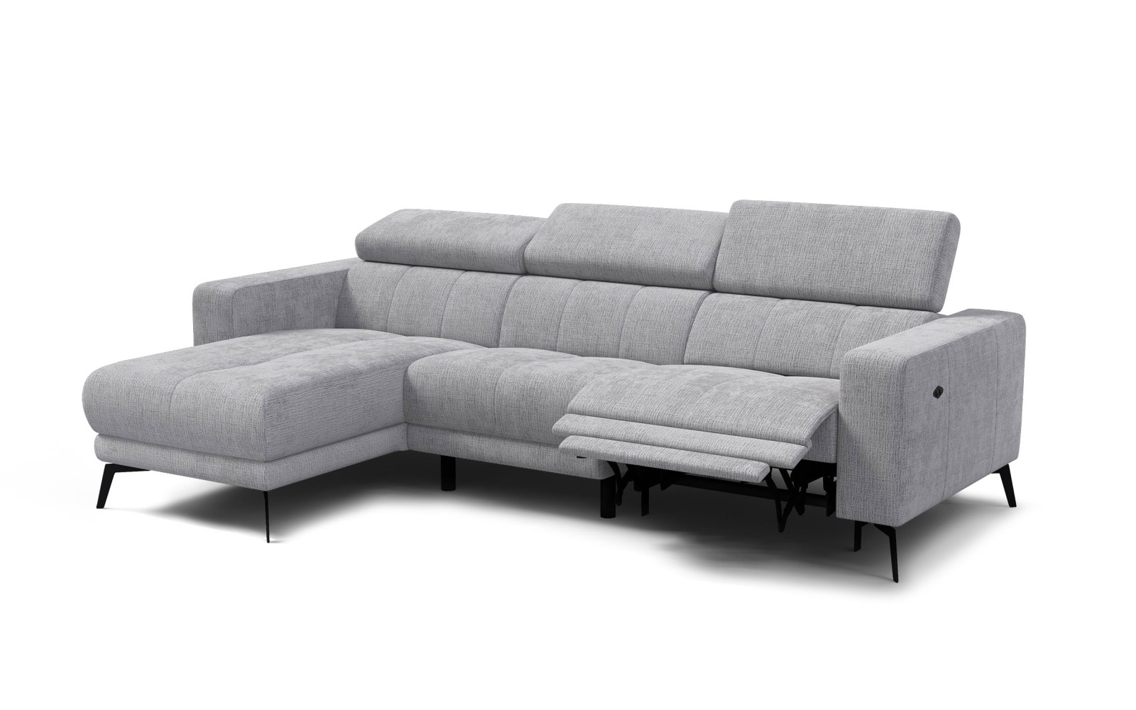 Canapé d'angle 4 places MORELLO avec 1 x Relax Zero Gravity, tissu gris clair