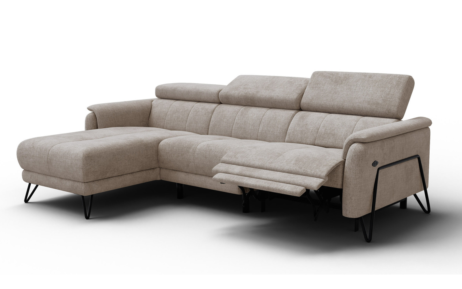 Canapé d'angle 4 places RODEN avec Relax, tissu beige