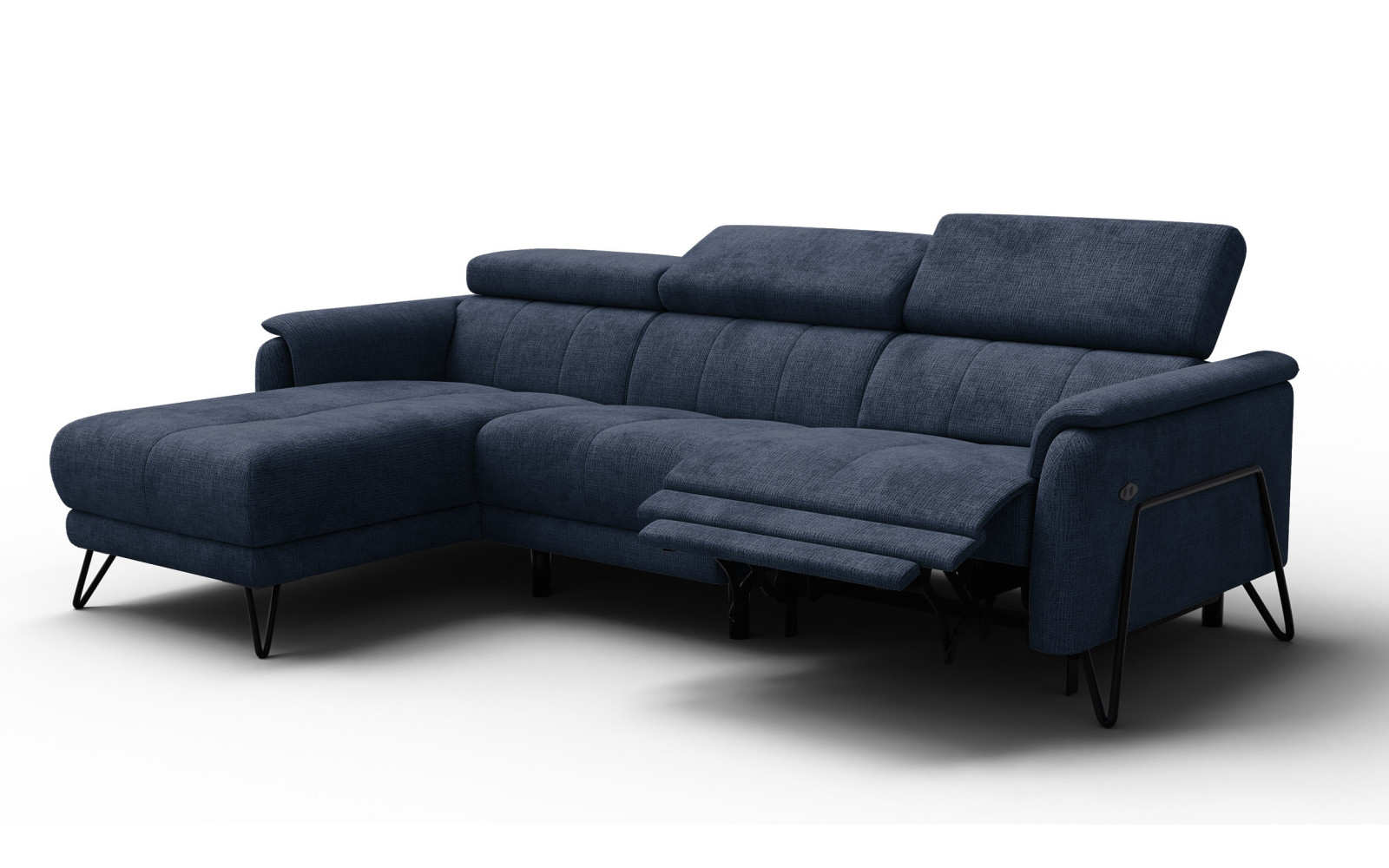 Canapé d'angle 4 places RODEN avec Relax, tissu bleu marine