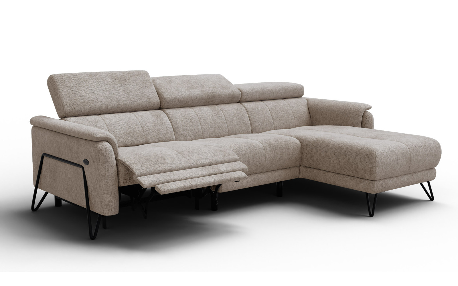 Canapé d'angle 4 places RODEN avec Relax, tissu beige