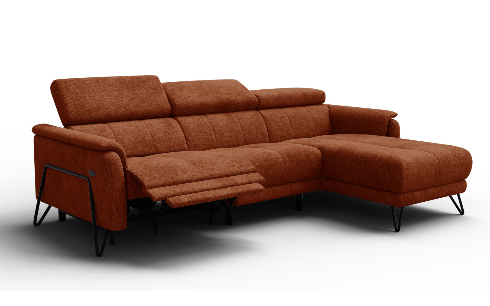 Canapé d'angle 4 places RODEN avec Relax, tissu orange foncé