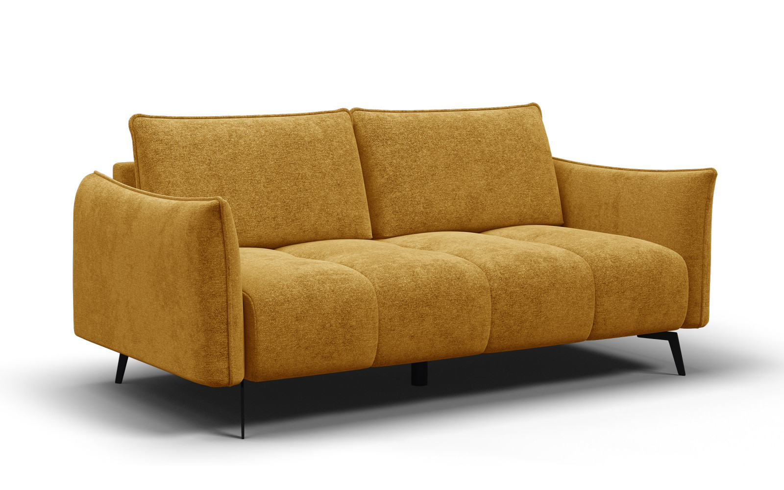 Canapé 2,5 places AERA, couleur miel - Description :AERA 2,5 places, couleur miel. Cette teinte de jaune unique, profonde et intense, évoque la chaleur et la douceur du miel, ainsi que les couleurs dorées de l'automne polonais. C'est le choix idéal pour ceux qui souhaitent réchauffer leur salon et lui conférer une ambiance à la fois cosy et élégante. La couleur miel s'harmonise parfaitement avec le vert bouteille, le bleu marine ou les gris, créant ainsi des compositions raffinées. L'atout indéniable de ce modèle réside dans son revêtement. Le velours à poils courts utilisé séduit par sa douceur et son toucher velouté. La texture hétérogène du matériau permet au canapé AERA couleur miel de jouer magnifiquement avec la lumière. Ce jeu de nuances donne du relief à la couleur, qui scintille de reflets dorés, ambrés et moutarde au fil de la journée. Ce jeu d'ombre et de lumière confère à ce meuble une allure luxueuse et en fait une véritable pièce maîtresse pour votre salon. Canapé AERA 2,5 places, Miel – Un équilibre parfait entre style et confortLe design de ce modèle est un savant mélange de modernité et d'élégance classique. La simplicité de sa silhouette, dépourvue d'ornements superflus, est sublimée par ses fins pieds noirs de seize centimètres de hauteur. Ce contraste entre la chaleur du revêtement couleur miel et la sobriété du piètement noir incarne à merveille le style moderne. Le canapé AERA 2,5 places couleur miel affiche une silhouette incroyablement élégante sans encombrer la pièce, ce qui en fait un choix idéal, même pour les petits appartements. Le confort de ce canapé est incomparable. Son tissu en velours doux et agréable au toucher offre une expérience sensorielle unique. Les coussins de dossier amovibles offrent un soutien ergonomique du dos, permettant une détente complète après une journée éprouvante. C'est l'endroit idéal pour une sieste l'après-midi, la lecture de votre roman préféré ou tout simplement pour se prélasser. L'assise confortable vous invite à y passer chaque instant libre. Pourquoi choisir le canapé AERA couleur miel ?En choisissant ce modèle, vous optez pour un meuble à la fois esthétique et durable. Son tissu en polyester épais et résistant à l'abrasion garantit une excellente longévité. La couleur miel, à la fois originale et polyvalente, s'harmonise avec de nombreux styles d'intérieur : scandinave, rétro ou loft moderne. Ce meuble évolue avec votre décoration, conservant toujours une allure élégante et actuelle. Ce modèle est également pratique. Ses pieds hauts facilitent le nettoyage, un atout essentiel au quotidien. Vous pouvez ainsi passer l'aspirateur facilement sous le canapé et maintenir une hygiène irréprochable dans votre salon. De plus, le tissu en velours est relativement facile d'entretien, ce qui rend ce meuble idéal pour toute la famille. Un canapé couleur miel est aussi un excellent moyen de se remonter le moral. Les tons jaunes sont inconsciemment associés à la joie et à l'énergie, ce qui a un impact positif sur l'atmosphère de votre maison. C'est un meuble qui vous accueille avec un sourire dès que vous y entrez, vous invitant à partager des moments conviviaux. Il apporte luminosité et chaleur à votre intérieur, même par temps gris. En résumé, si vous recherchez un meuble alliant fonctionnalité, confort et design unique, ce modèle est un excellent choix. Offrez-vous une touche de luxe et créez chez vous un espace de détente qui vous ravira par son confort et son esthétique unique. Un canapé couleur miel est un investissement dans la beauté et le confort au quotidien. |