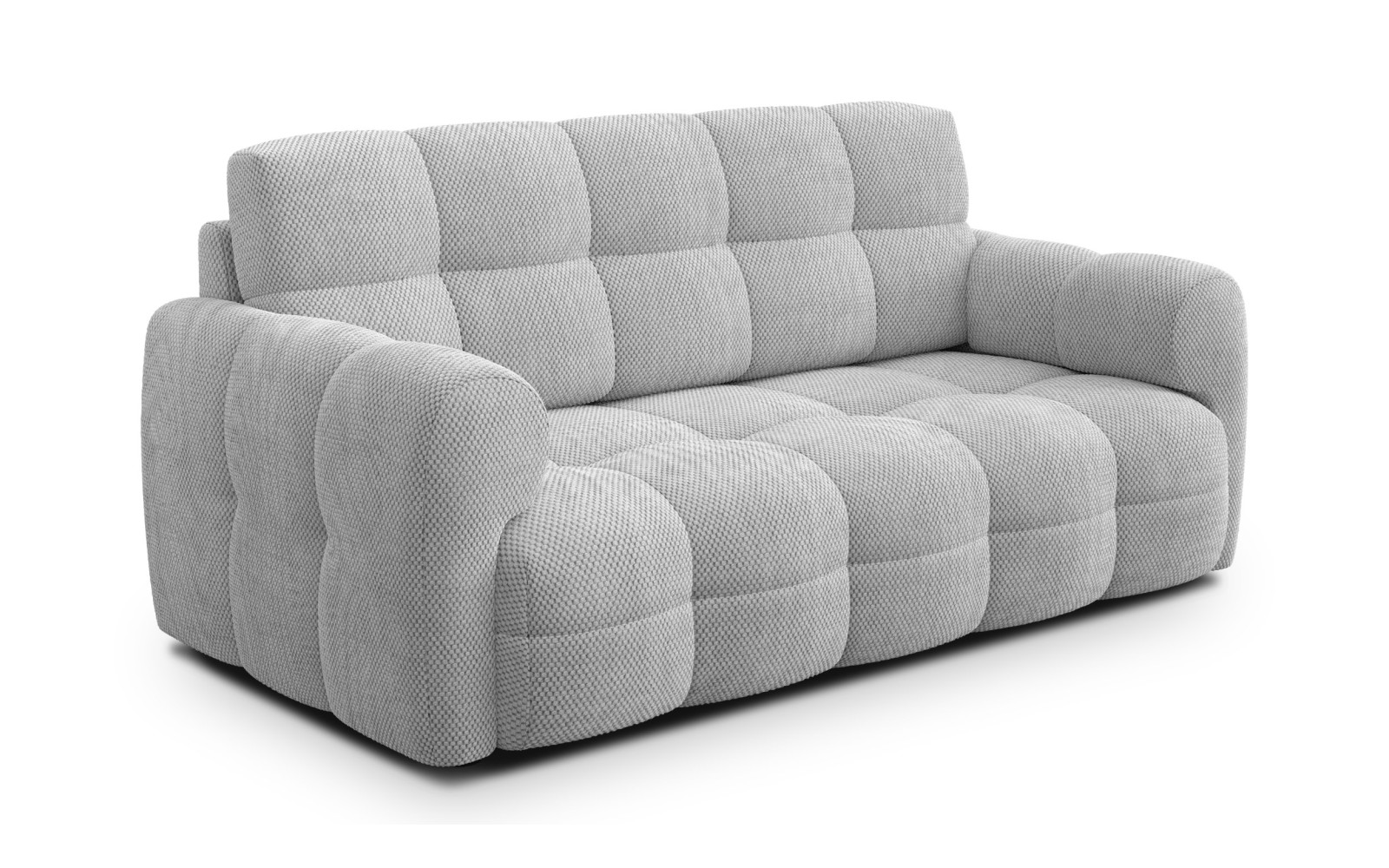 Canapé MELLOW 2,5 places, gris clair - Description :Si vous souhaitez égayer Pour apporter une touche de légèreté à votre salon, le canapé MELLOW 2,5 places gris clair est le choix idéal. Ce meuble subtil et élégant incarne à la perfection le style moderne, puisant son inspiration dans les plus belles tendances. Sa teinte grise claire agrandit visuellement l'espace et aère la pièce, tandis que le canapé lui-même se fond harmonieusement dans le décor, mettant en valeur des accessoires colorés ou se détachant comme un élément minimaliste de la décoration. Une proposition idéale pour ceux qui privilégient la fraîcheur et l'harmonie dans leur intérieur. Grâce à ses dimensions, ce modèle offre un espace optimal pour deux ou trois personnes. Le canapé MELLOW 2,5 places gris clair s'inscrit parfaitement dans la tendance scandinave, où simplicité, fonctionnalité et confort sont essentiels. Ce meuble vous invite à y passer d'agréables moments de détente, offrant non seulement un attrait visuel indéniable, mais surtout un confort d'utilisation incomparable, dont vous profiterez au quotidien. Pourquoi choisir le canapé MELLOW gris clair ?L'originalité de ce meuble réside dans son revêtement. Le canapé MELLOW 2,5 places gris clair est recouvert d'un tissu à la structure gaufrée unique. Le tissage régulier en forme de cube tridimensionnel confère à la surface une texture unique qui joue magnifiquement avec la lumière. Ainsi, le revêtement clair n'est pas plat et monotone, mais gagne en profondeur et en raffinement, tout en étant incroyablement doux et velouté au toucher. La qualité du matériau utilisé est à la hauteur de son apparence. Le tissu est épais et résistant, ce qui lui assure une grande durabilité face aux aléas du quotidien. Le canapé MELLOW gris clair est donc durable et indéformable, un atout essentiel pour conserver sa beauté pendant des années. La durabilité pratique s'allie à un style décoratif, créant un produit abouti et bien pensé. La stabilité de la structure est assurée par les pieds bas et noirs, qui offrent un contraste élégant avec le revêtement clair. Leur forme minimaliste ne détourne pas l'attention du corps principal du meuble, mais le complète subtilement. Le canapé lounge MELLOW, dans une teinte gris clair, paraît léger et moderne grâce à eux, facilitant l'harmonie visuelle du salon, quelle que soit sa taille. Confort et détente sur le canapé MELLOW. Le véritable atout de ce modèle réside dans le confort qu'il offre. L'intérieur du canapé MELLOW 2,5 places, gris clair, est composé de couches de mousse soigneusement sélectionnées, de densités différentes. Cette solution rend l'assise confortable et durable, prévenant l'affaissement excessif, tout en offrant une sensation agréablement moelleuse. C'est l'endroit idéal pour une sieste l'après-midi ou un film en soirée. Le dossier est rembourré de fibres de silicone, garantissant un confort exceptionnel. Ce matériau est reconnu pour sa résilience et sa capacité à s'adapter à la morphologie du corps. Ainsi, le canapé MELLOW 2,5 places gris clair épouse parfaitement votre dos, favorisant une relaxation musculaire complète. Un confort que vous ressentirez immédiatement et dont vous rêverez loin de chez vous. En bref, ce modèle allie esthétique et fonctionnalité à la perfection. En choisissant le canapé MELLOW gris clair, vous vous offrez un meuble qui illuminera votre intérieur, y ajoutera une touche d'élégance et vous garantira une détente optimale. C'est un investissement pour votre maison qui vous apportera beaucoup de joie et de satisfaction, tout en témoignant de votre bon goût. |