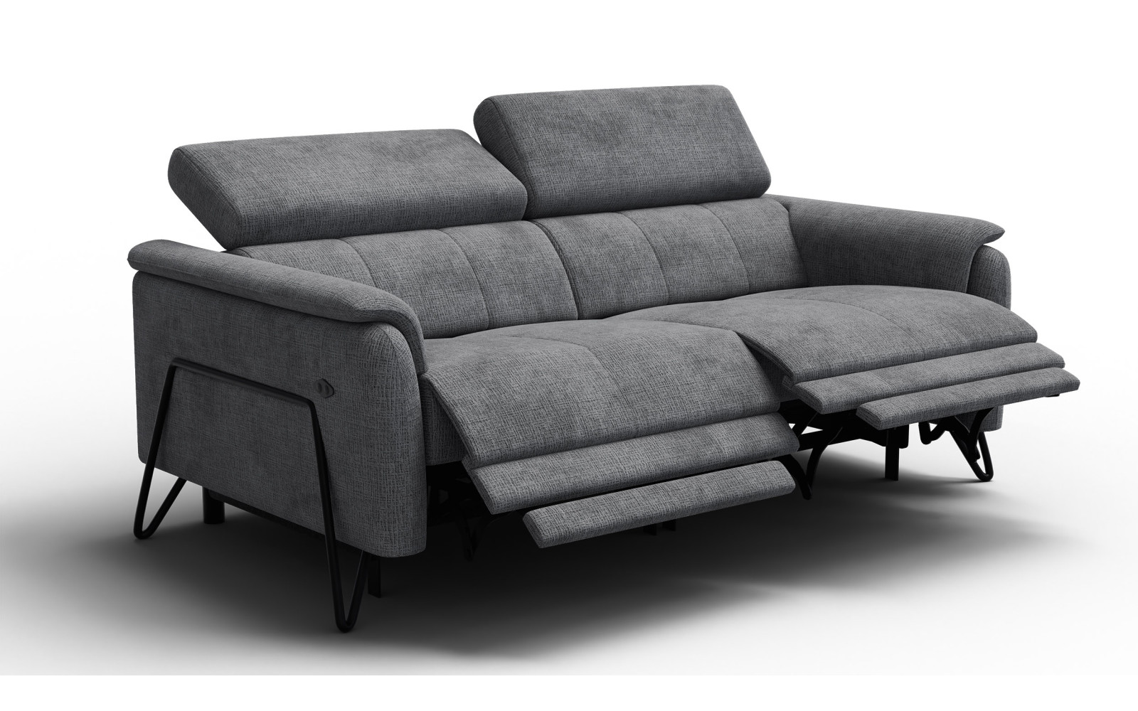 Canapé RODEN 3 places avec 2 Relax, tissu gris foncé