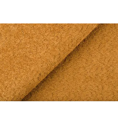 Tissu à structure canevas, lisse et mat. La couleur est irrégulière, composée de fils de différentes nuances dans une même gamme, donnant une impression de léger mélange. Le tissu est pratique, facile à entretenir et très fonctionnel.
